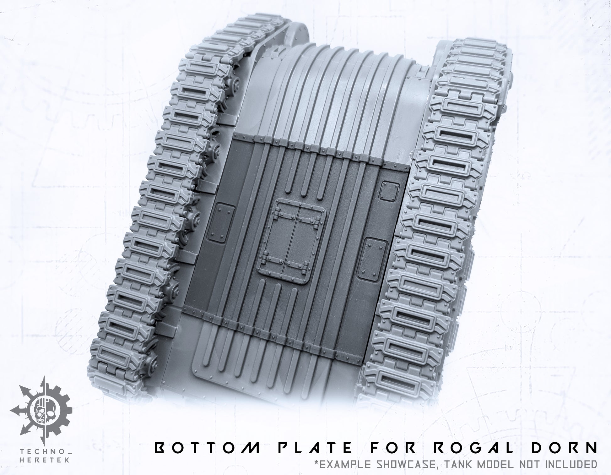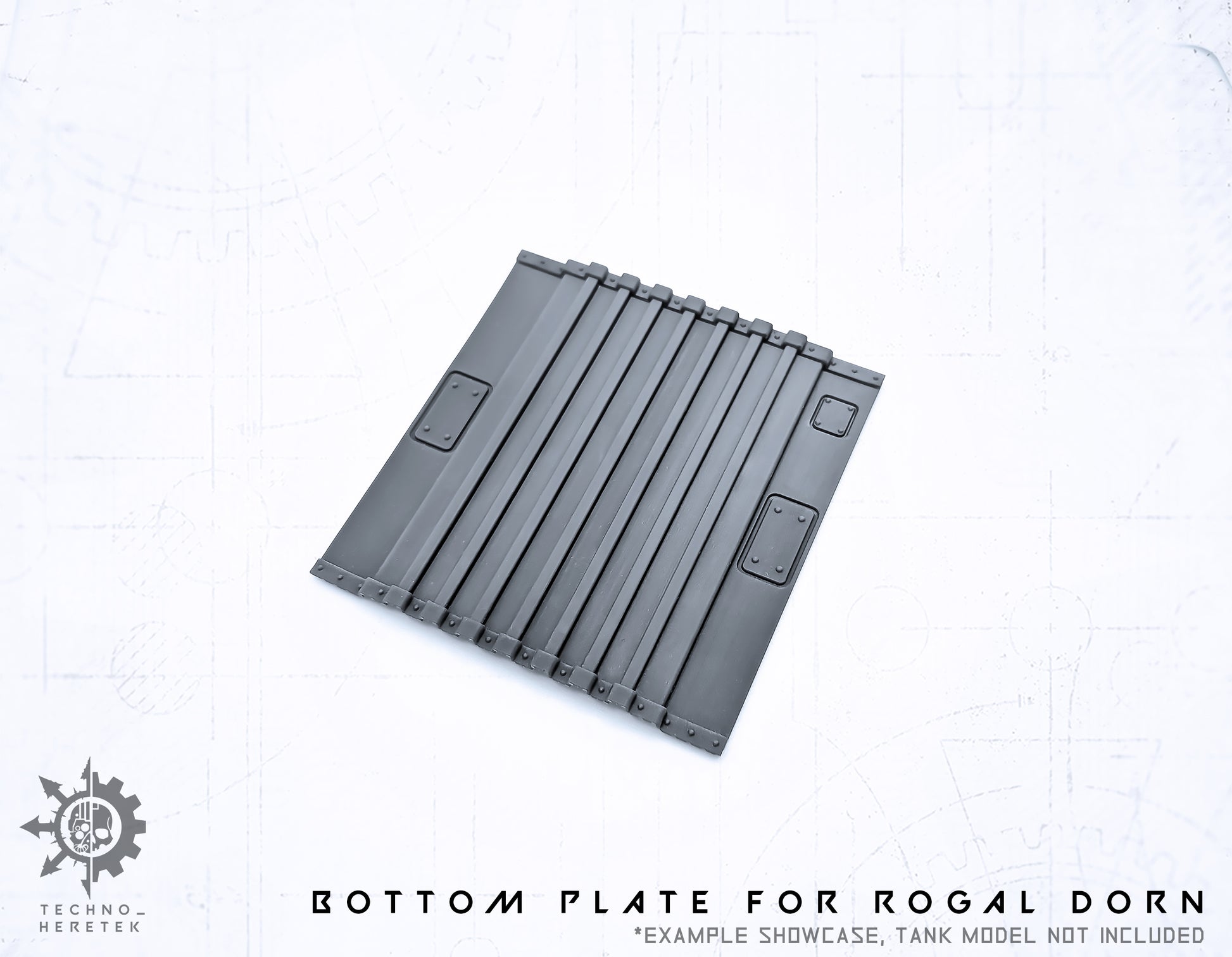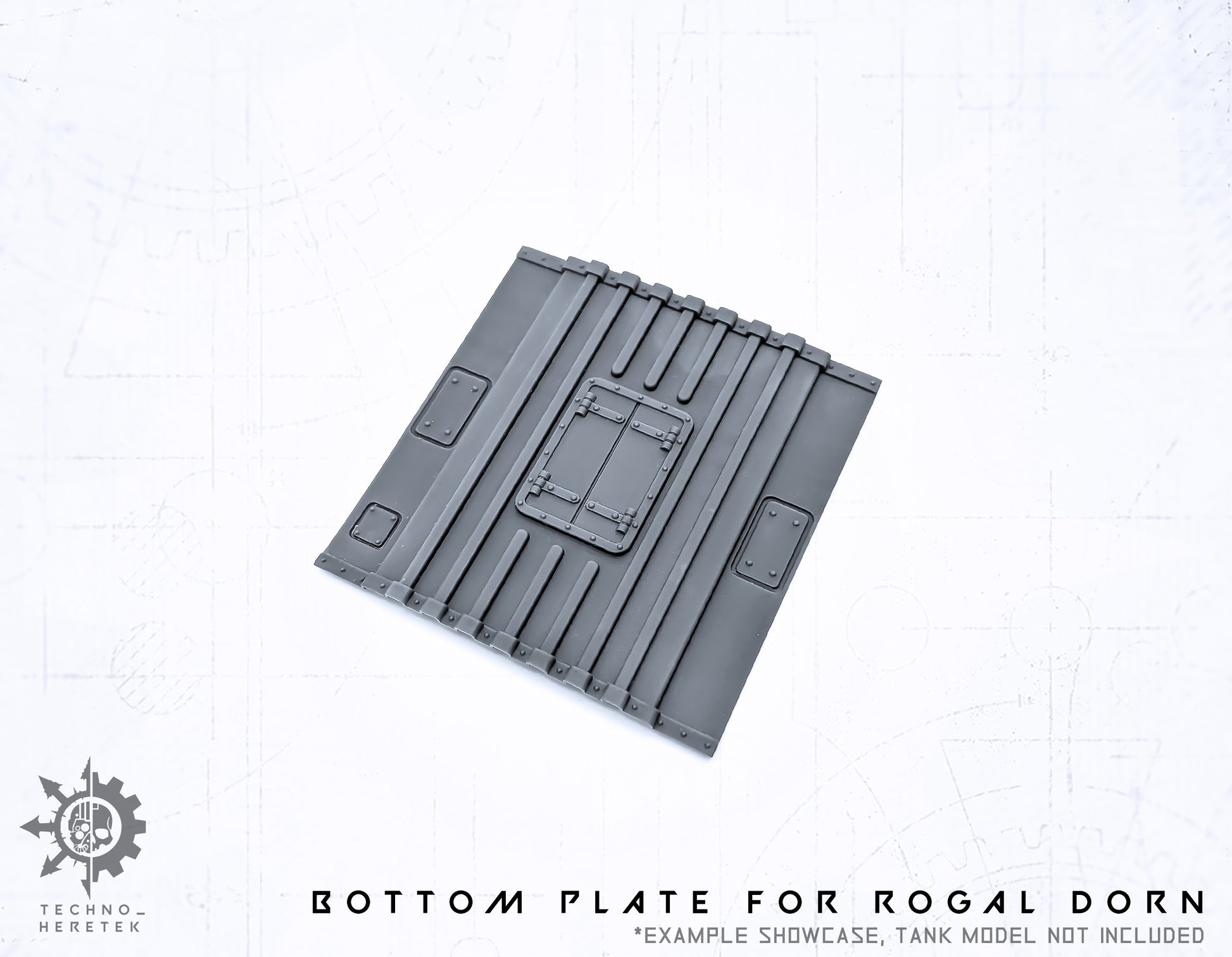 Bottom Plate to perfectly fill the gaping Hole in the Rogal Dorn Tank. Appropriately modeled for the Rogal Dorn Battle Tank and 3 different variants avialable.