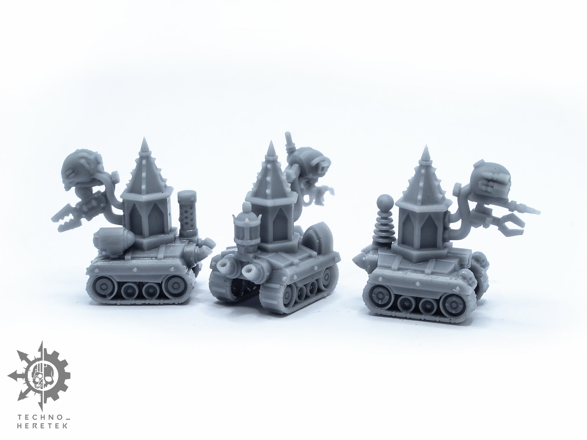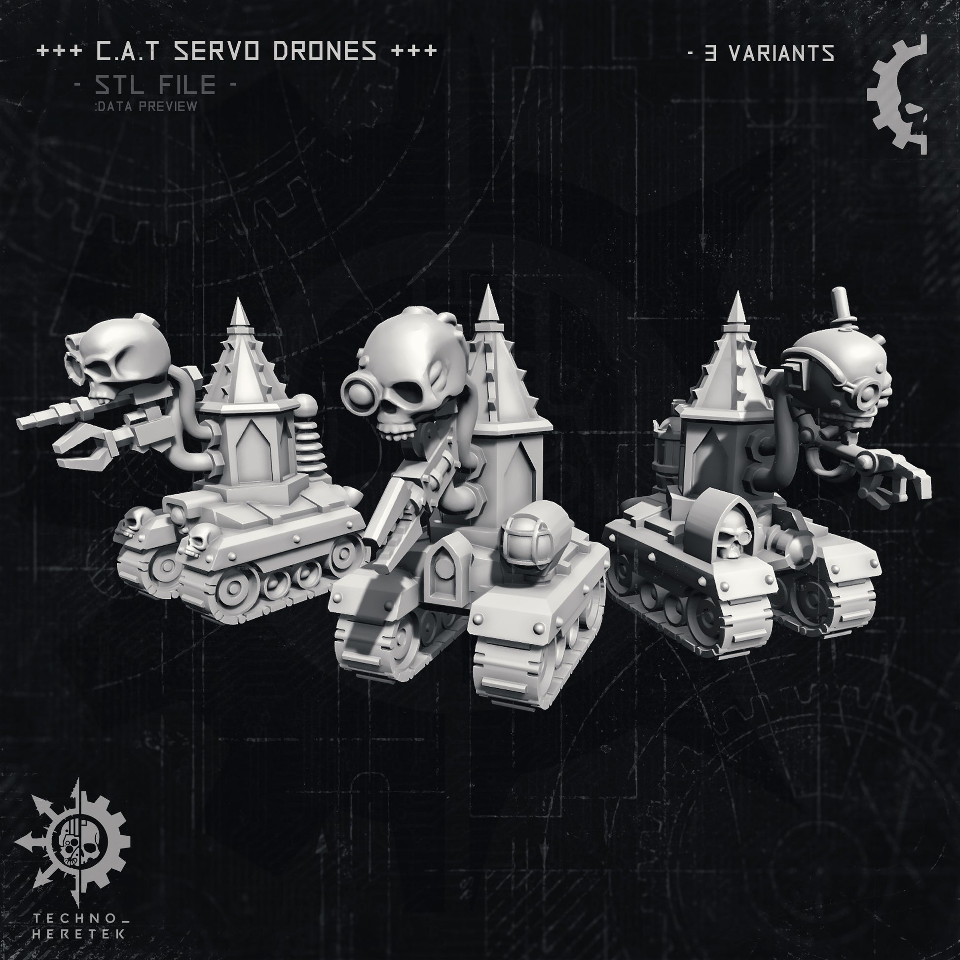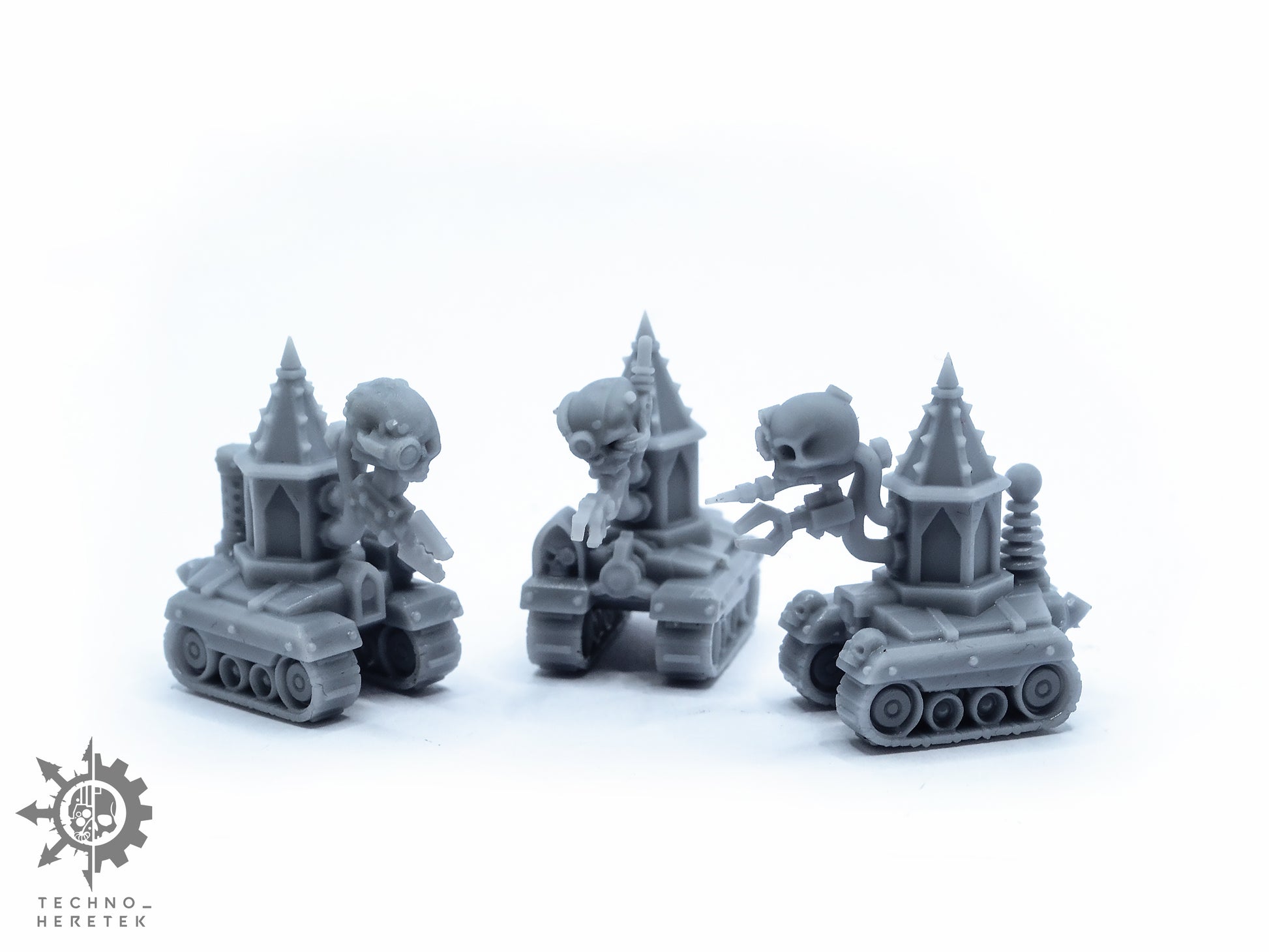 Servo drones for recovering artifacts and small maintenance tasks. Perfect for using an additional decoration for your Terrains, bases, and objective markers in atmospheric and narrative wargame scenarios.