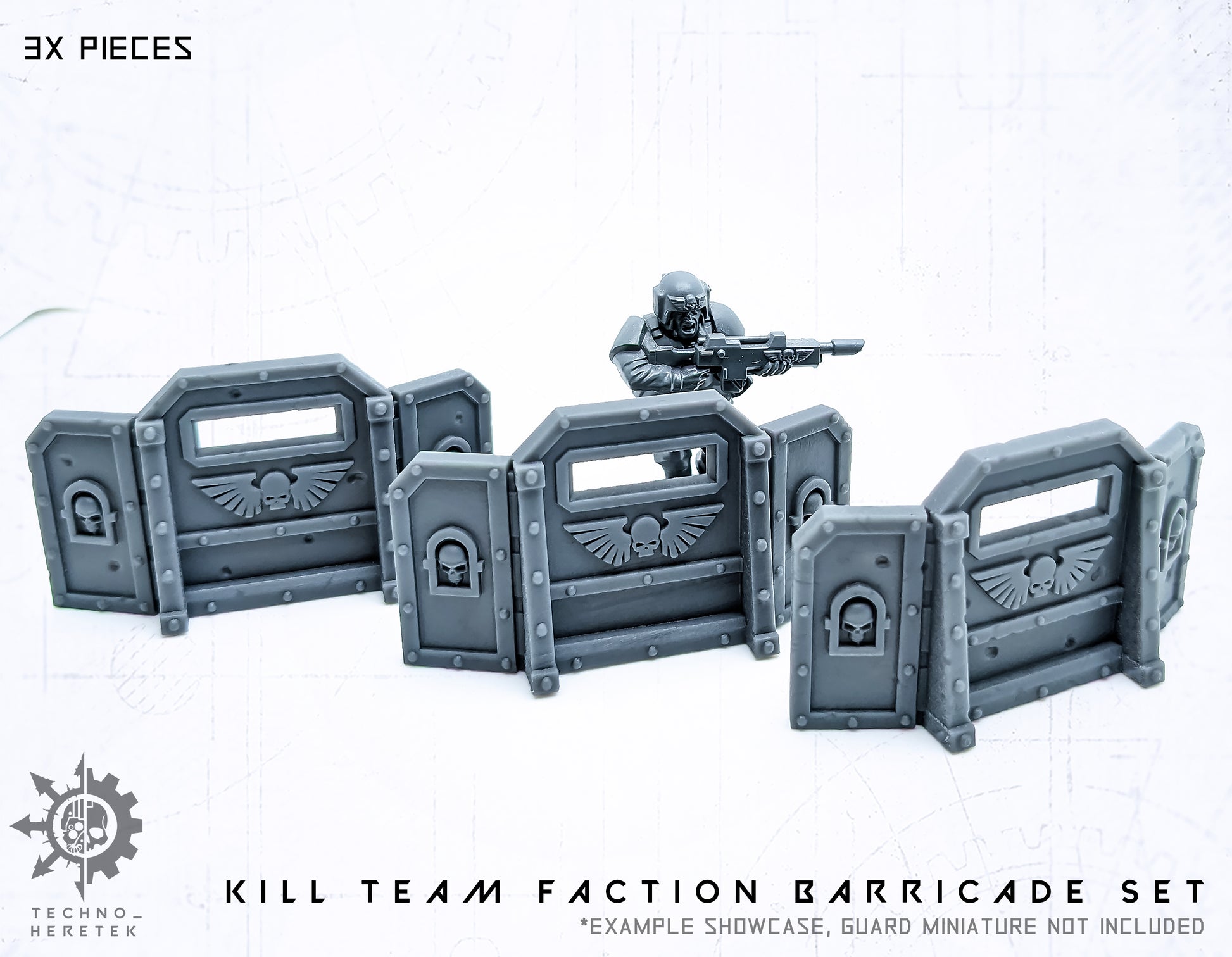 Beautifully designed faction-specific Barricades for the Wh40k Kill Team Tabletop game, designed for the Imperial Guard, Veteran Guardsmen and Kasrkin Kill Teams.