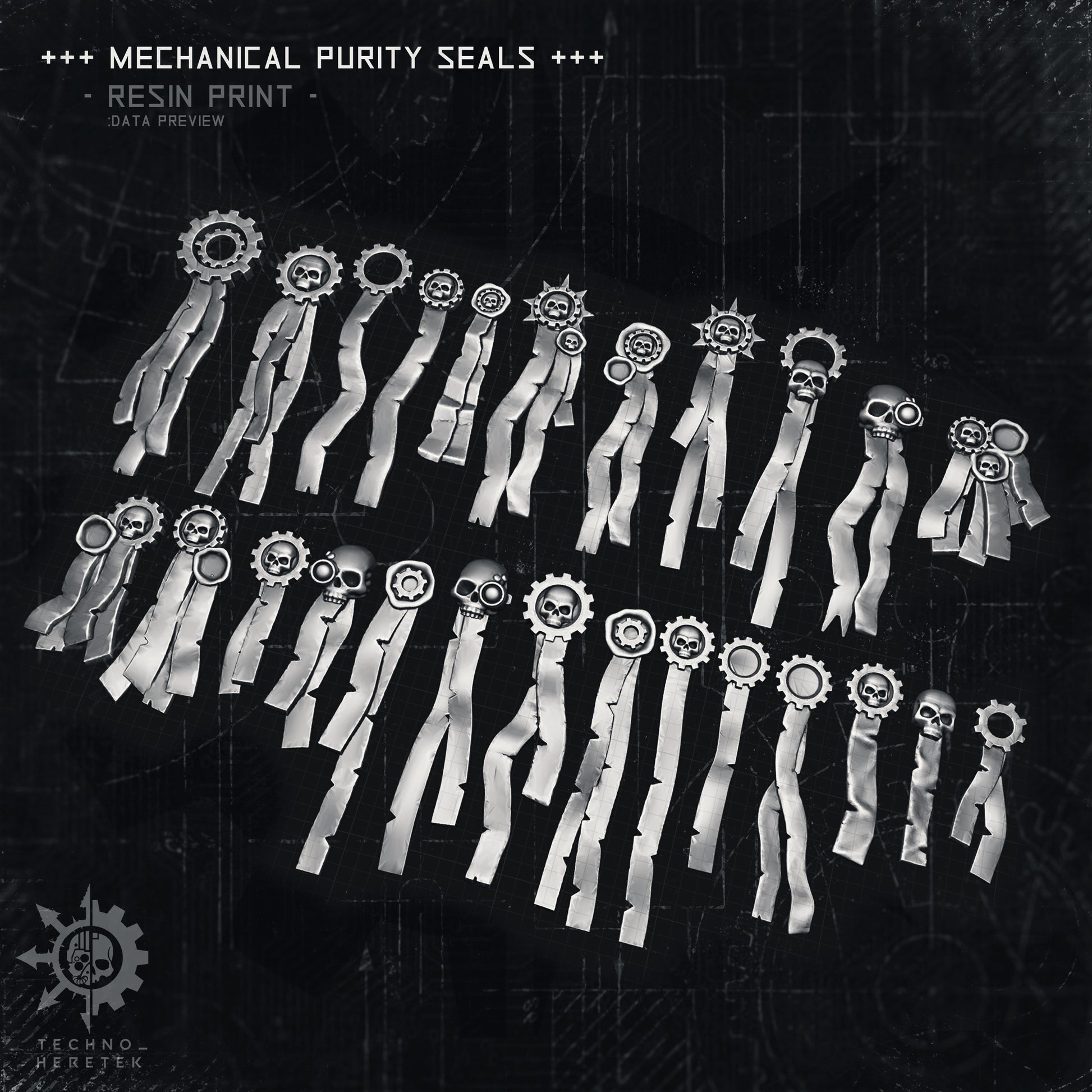 Gothic-styled purity seals with different mechanicus-inspired symbols to decorate your miniatures, terrains, and dioramas. Perfect to strengthen the machine spirit and make your mechanicus-like models more unique.