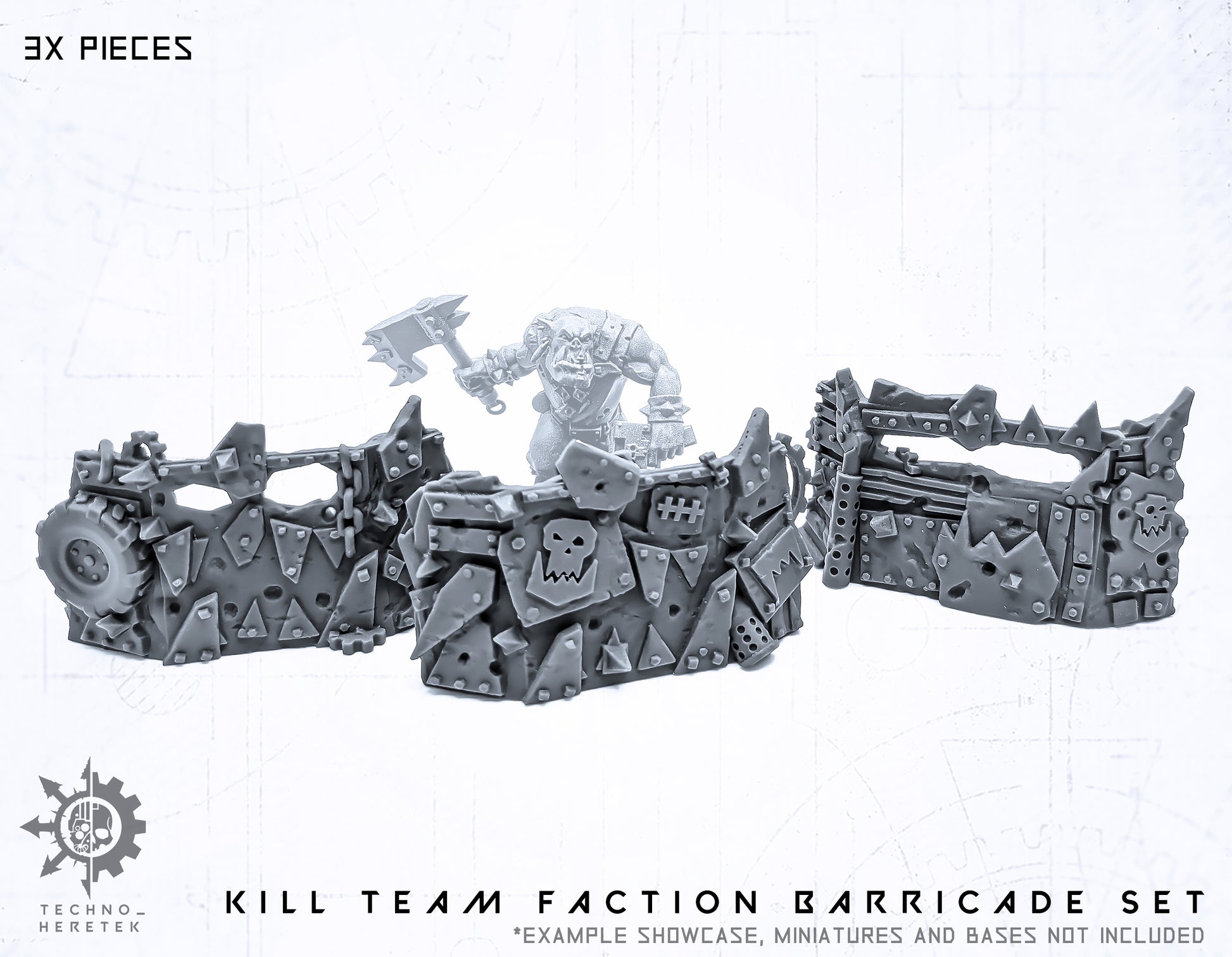Faction-themed Barricades for the Wh40k Kill Team Tabletop game, designed for the Orks Kill Teams. (Kommando & Greenskins)
