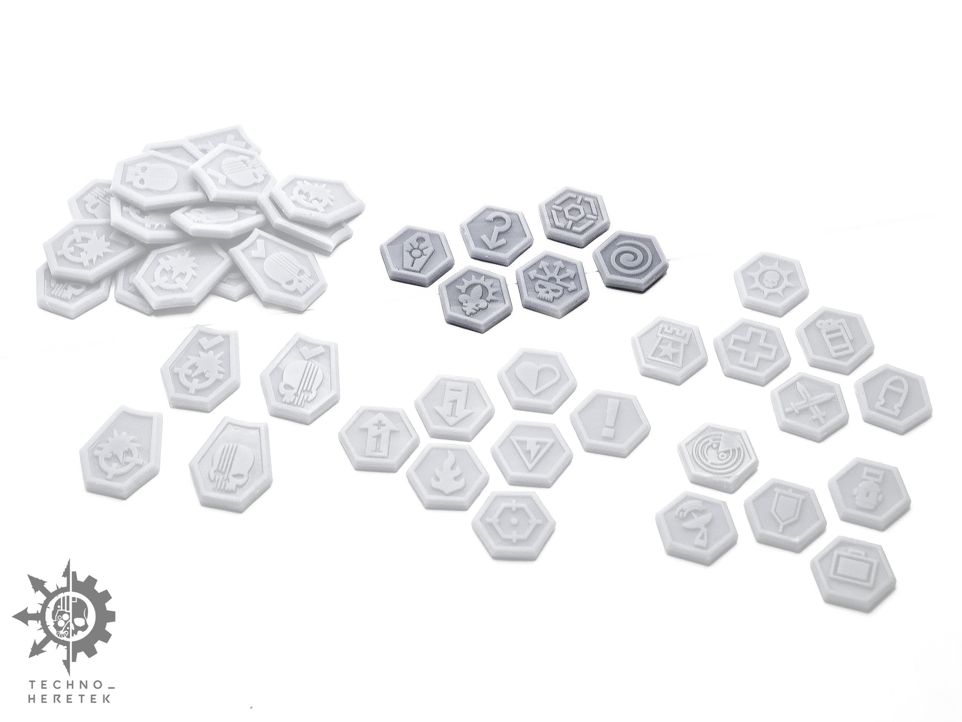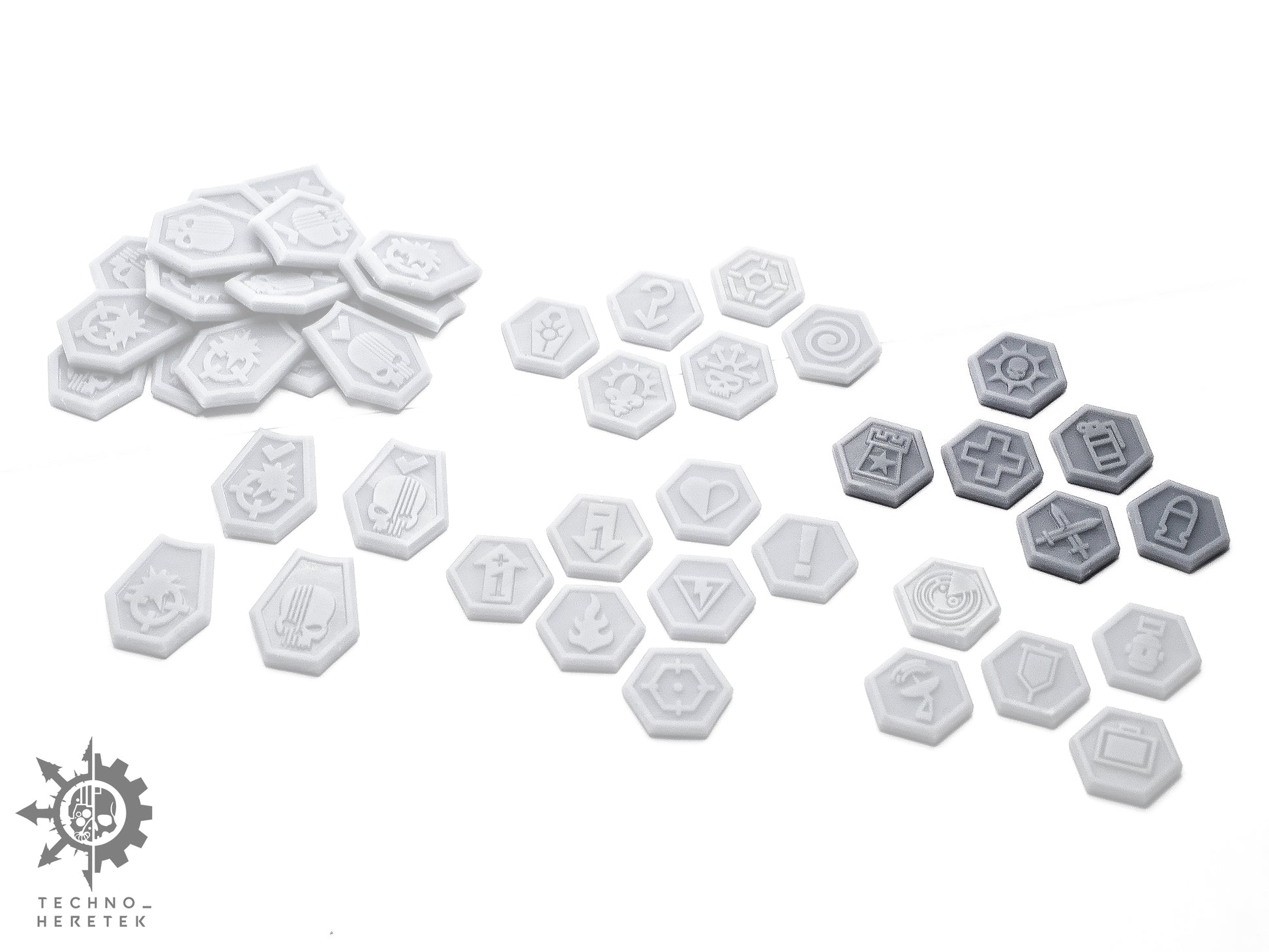 Time to upgrade your Kill Team games with these beautiful, streamlined token set in resin. Enough with the big flimsy paper tokens and make your gaming sessions more immersive. These tokens have a more compact footprint, solid feel and they can be painted up in any color combination you like.